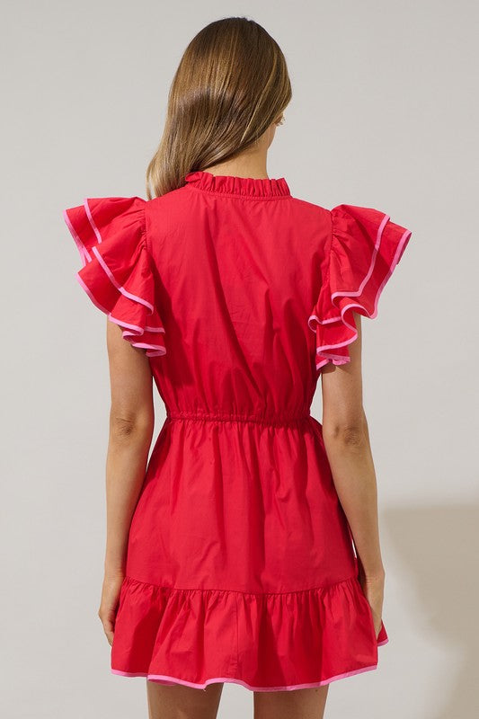 Add a pop of flirty elegance to your wardrobe with the Alina Ruffle Shift Mini Dress—a charming, easygoing piece made to turn heads from day to night. Featuring a split neckline with a playful mock ruffle collar, this dress is framed by dramatic ruffled short sleeves and a contrasting border that makes the floral print really bloom.