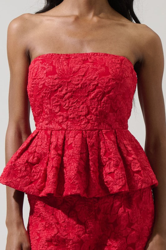 Turn heads in this strapless peplum top thatās as fierce as it is flattering! Made from a rich textured jacquard, it hugs in all the right places and flares just enough to give you that snatched waist moment. Perfect for girlsā night, date night, or any night you want to feel unstoppable.