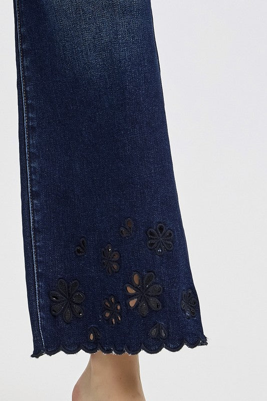Flower Cut Out High Rise Crop Wide Jeans