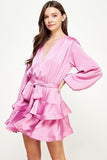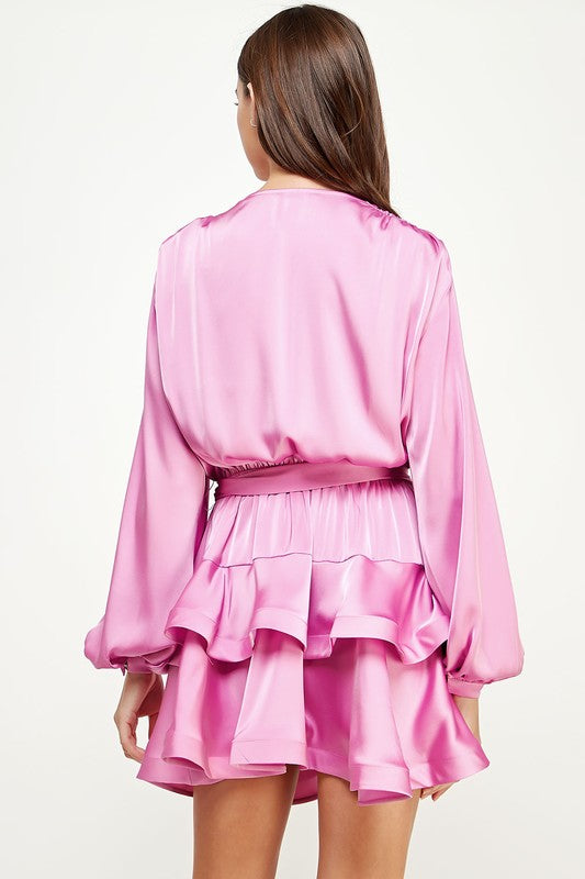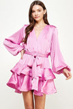Satin Tiered Long Sleeve Mini Dress – Lilac